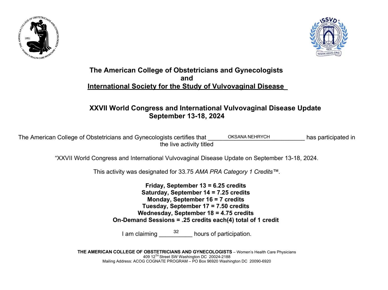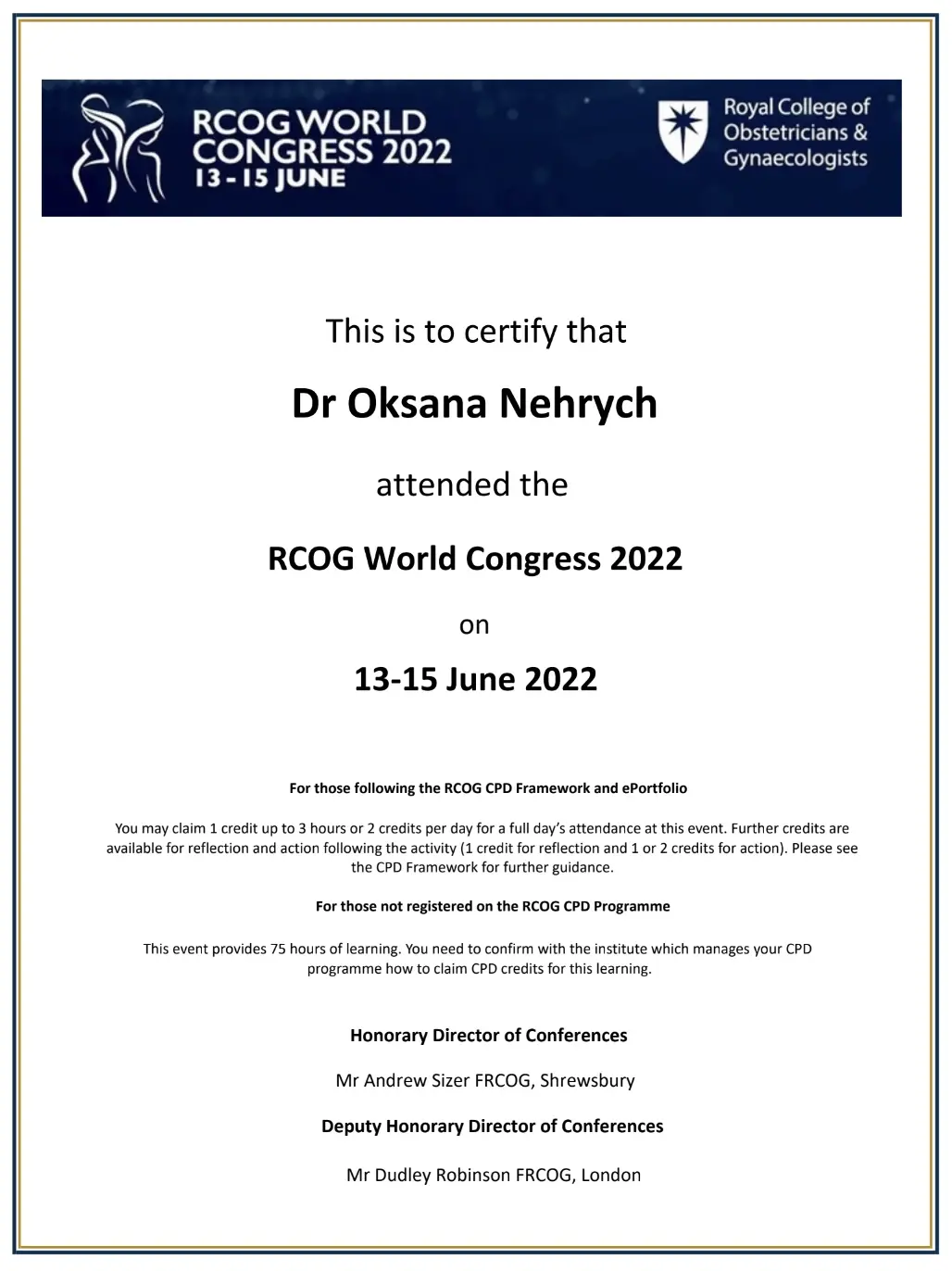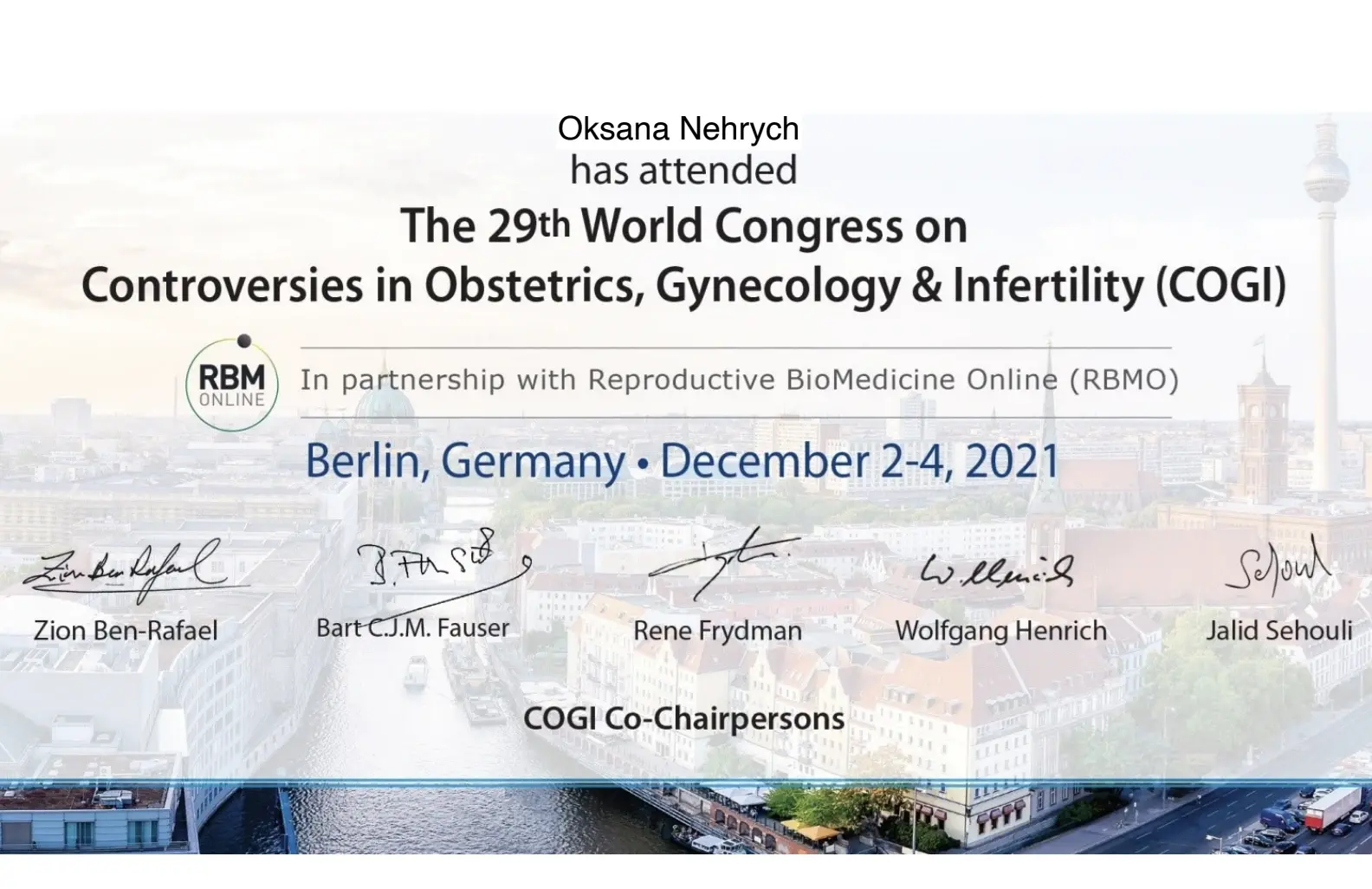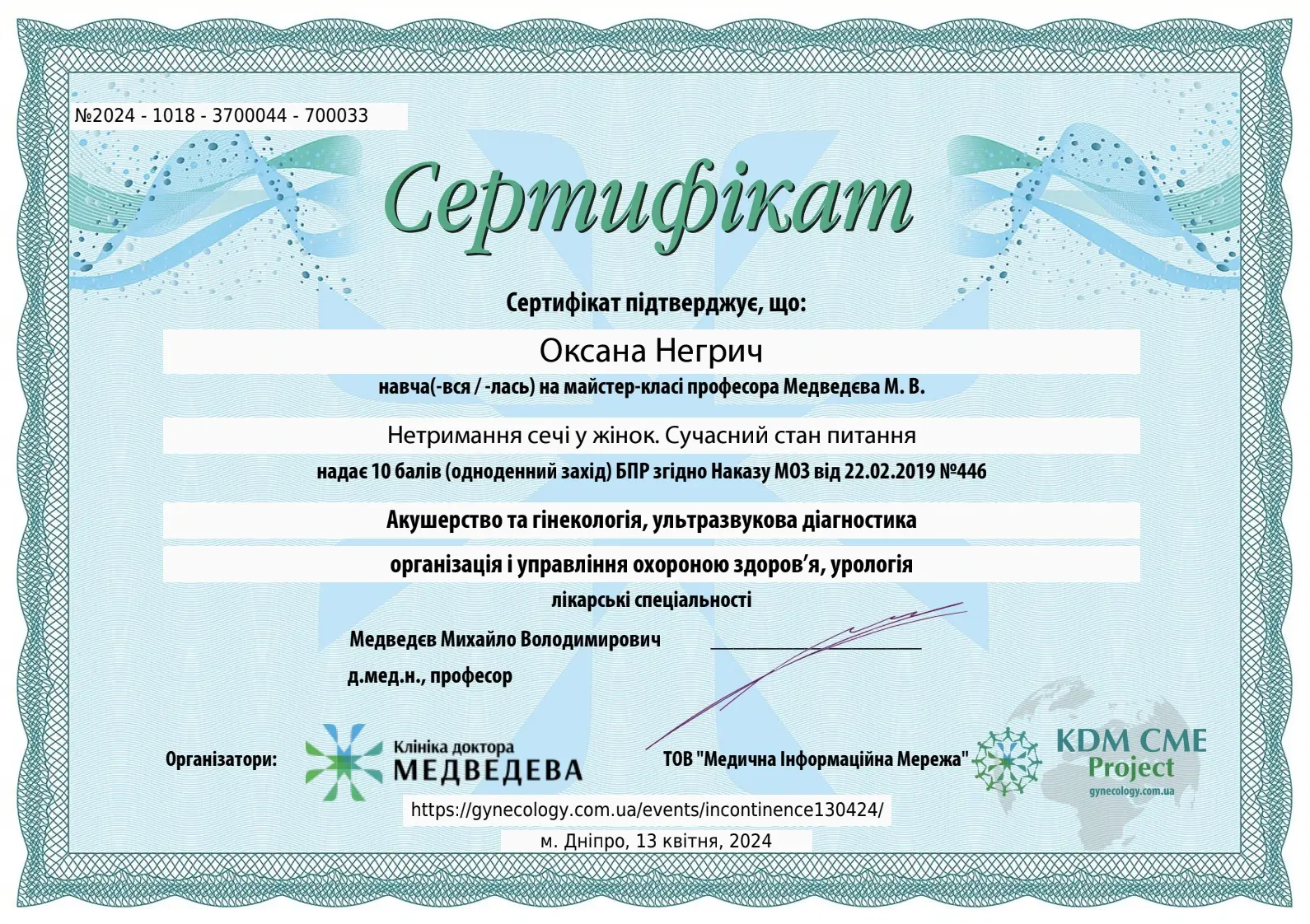 - 2016 - сертифікат спеціаліста за спеціальністю акушерство та гінекологія;