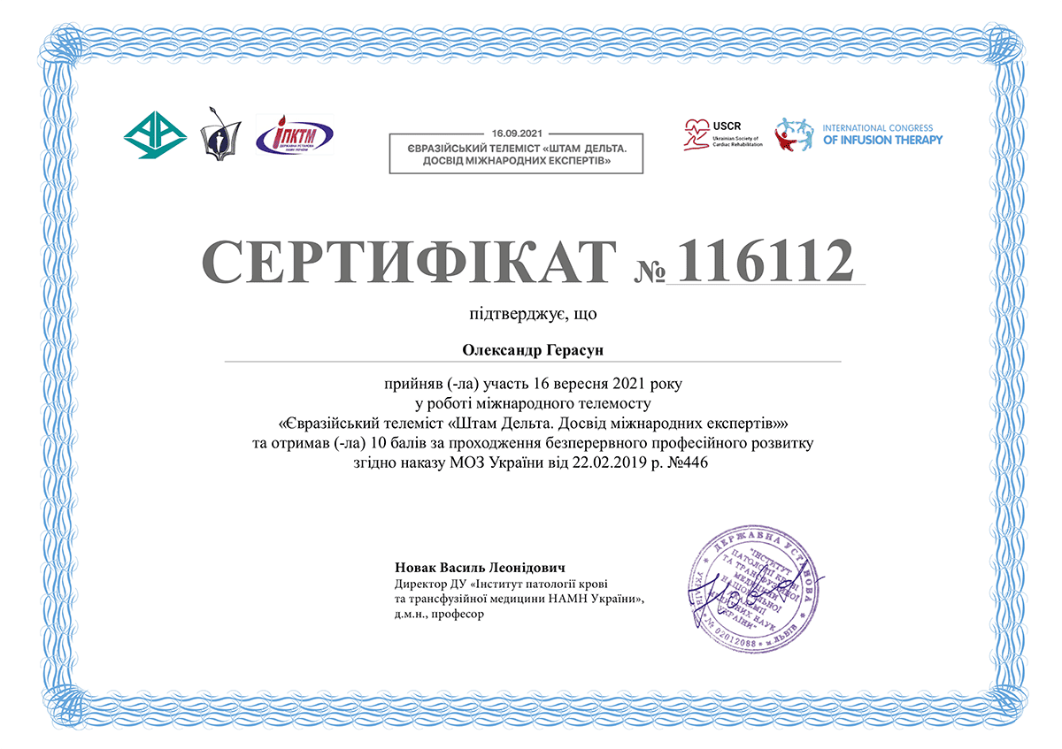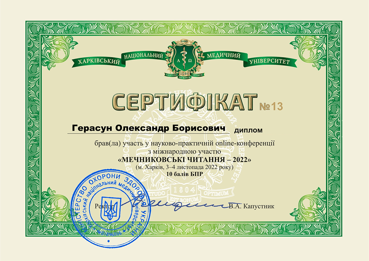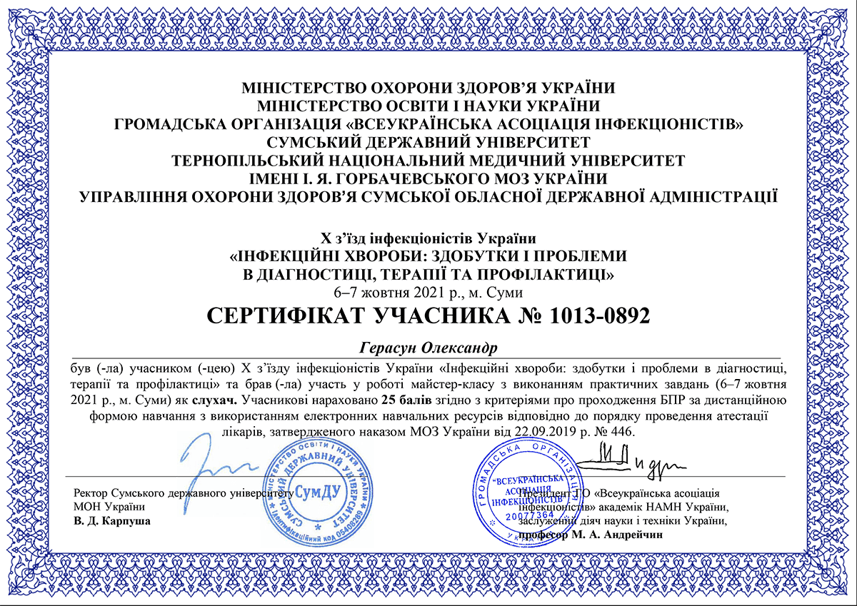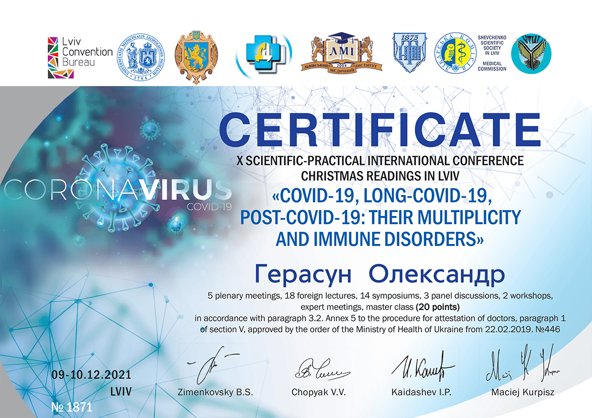 - Курси підвищення кваліфікації "Педагогічні, психологічні та правові аспекти вищої медичної освіти"