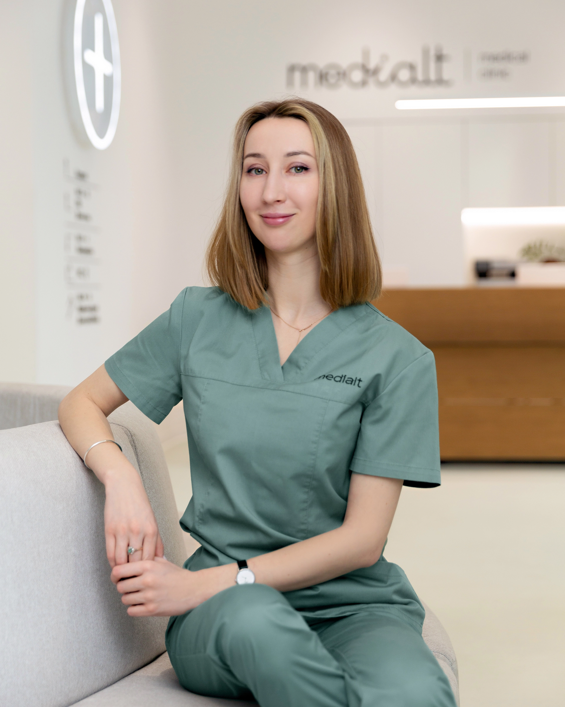 Як медична директорка, Олена Мирославівна забезпечує високі стандарти медичних послуг у клініці Медіальт, контролює якість надання медичної допомоги та координує роботу медичного персоналу. Також слідкує за дотриманням клінічних протоколів, бере активну участь у розробці стратегій розвитку клініки та дбає про професійне зростання нашої команди лікарів.