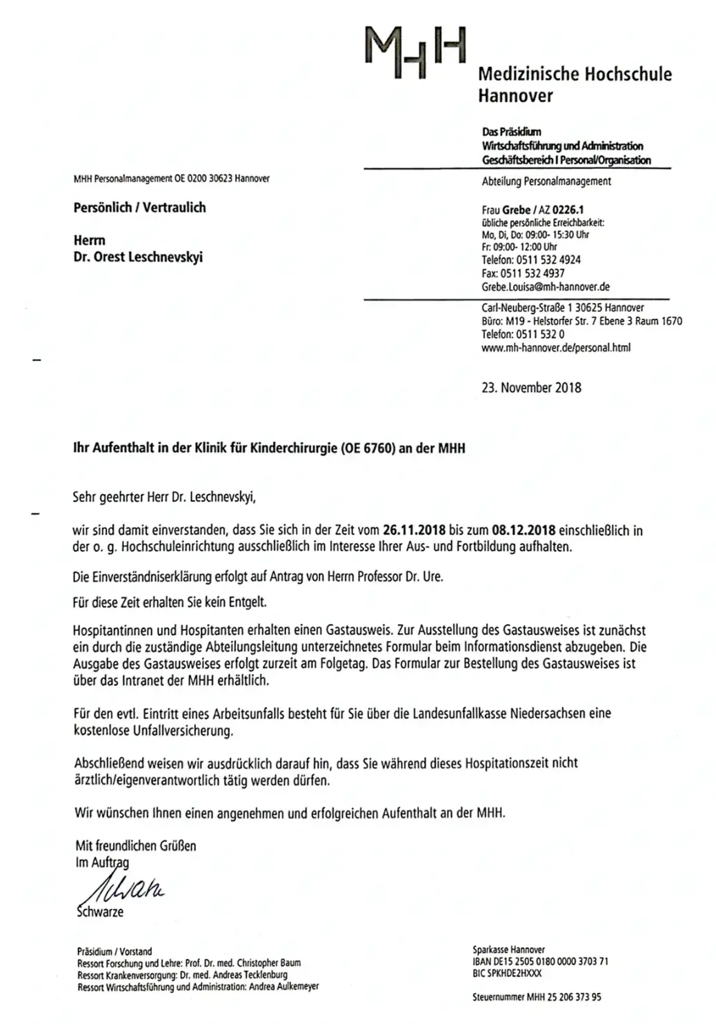 - 2018 – стажування в Медичній Вищій Ш Ганколіновера (МHH) (Німеччина) у відділенні дитячої хірургії.