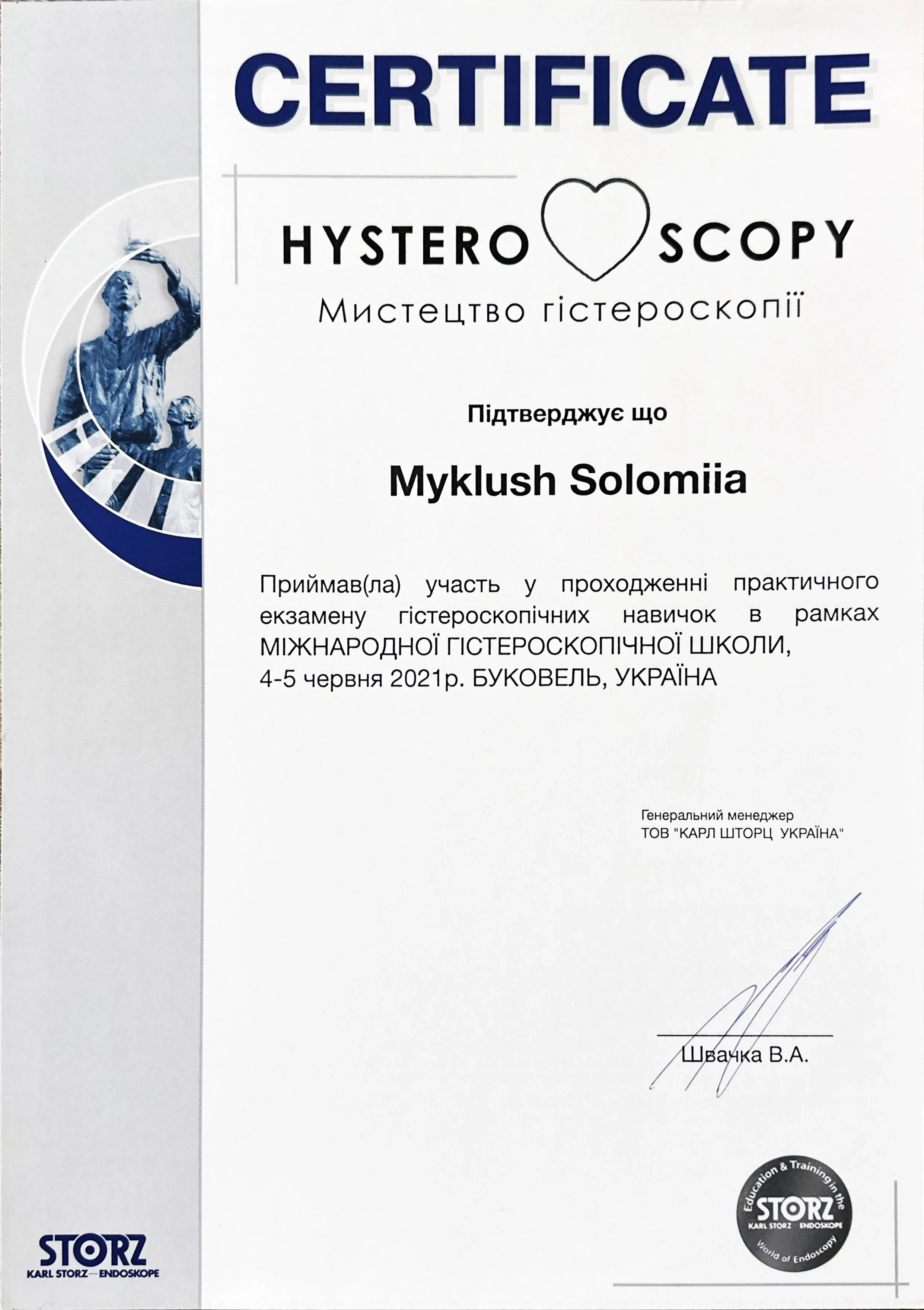 - 2021 - Міжнародна фахова гістероскопічна школа, Буковель