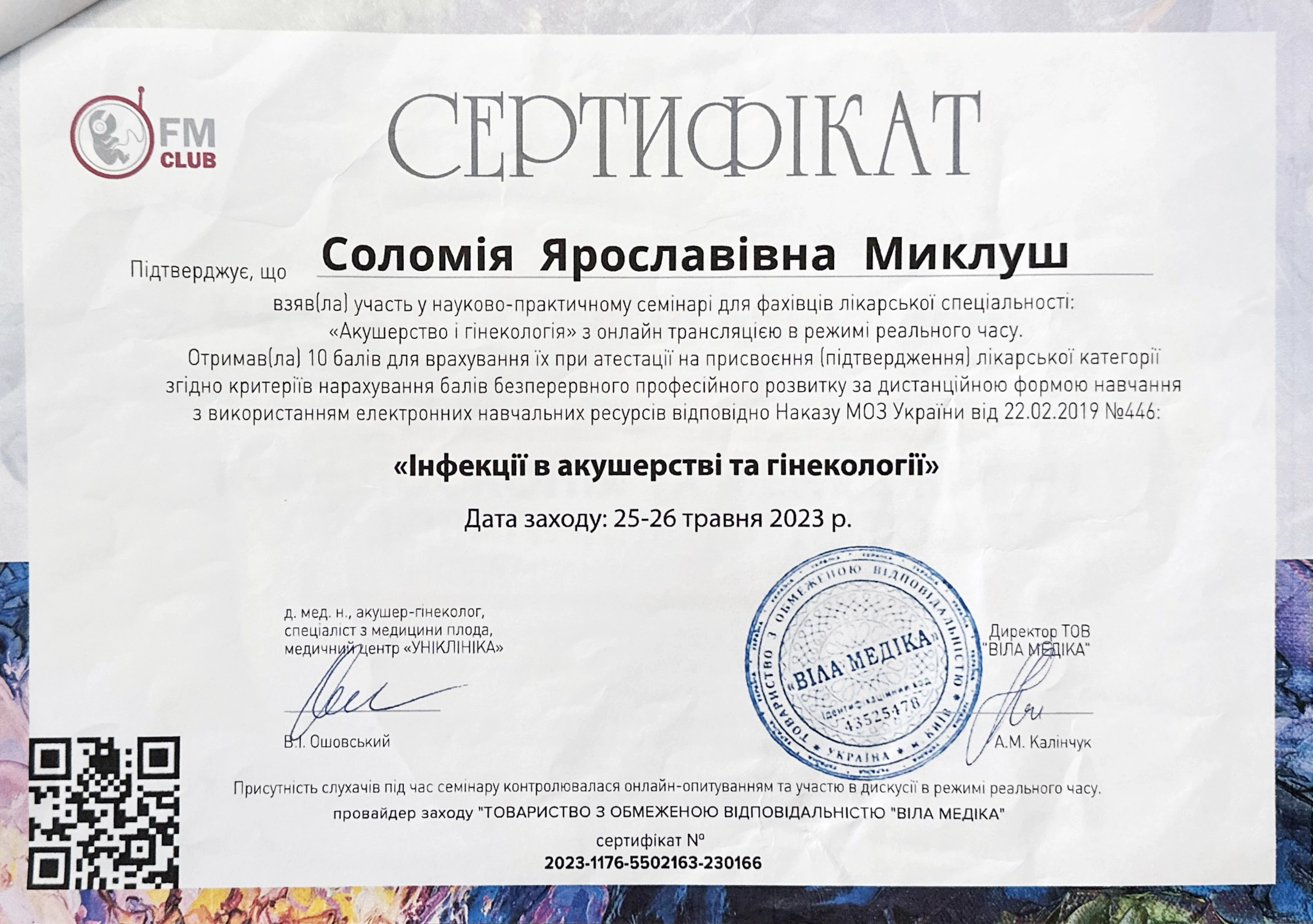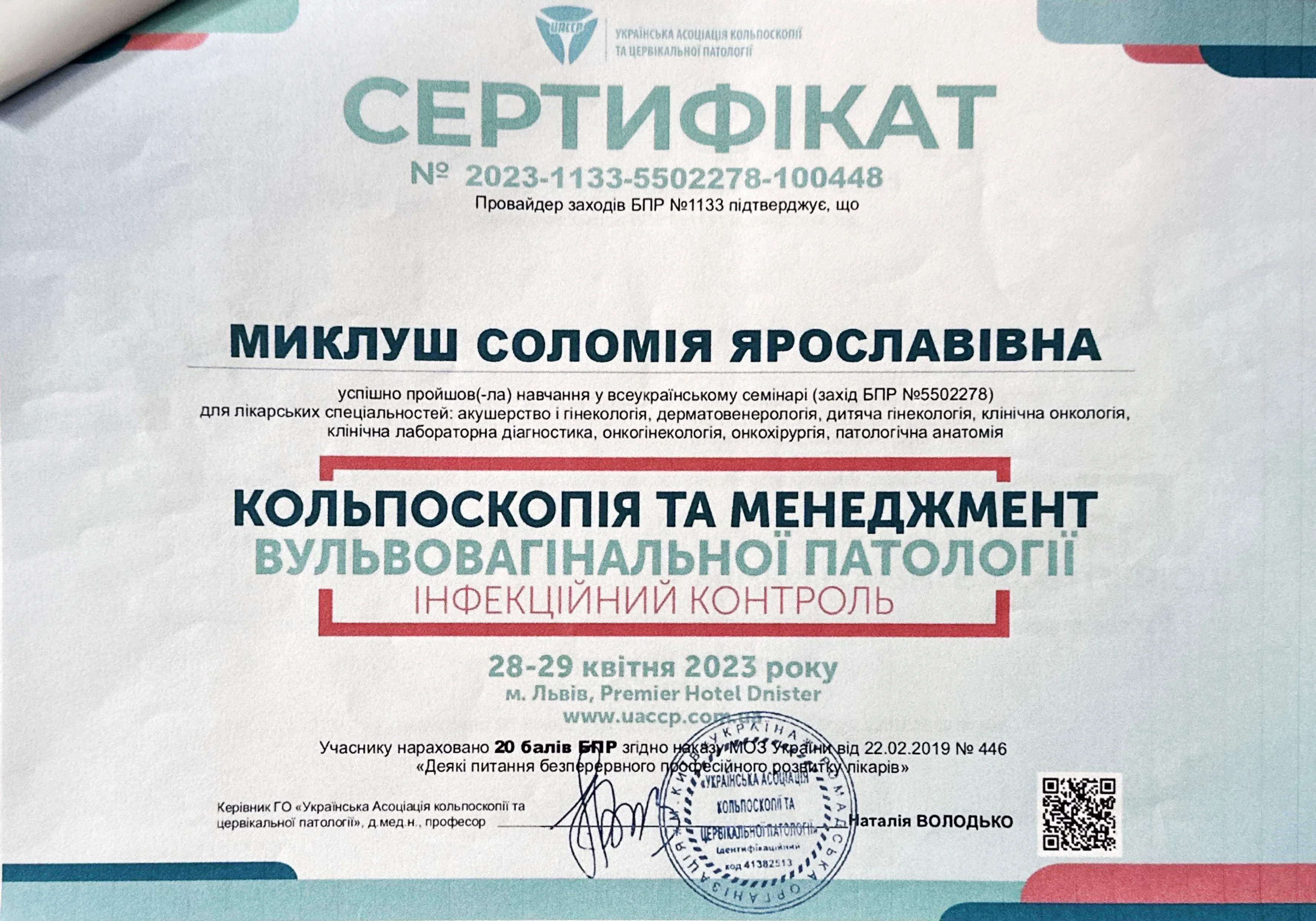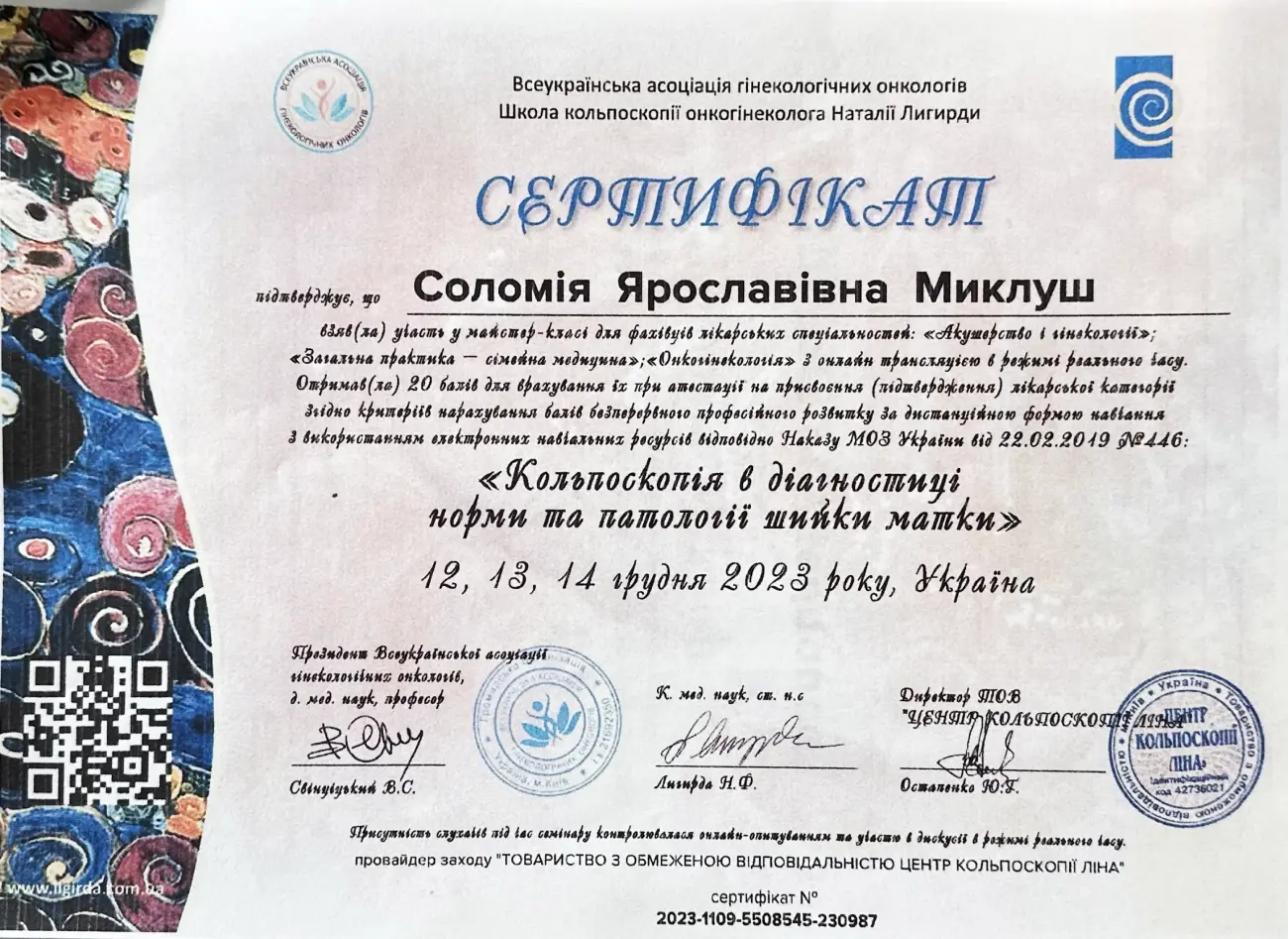 - 2023 - всеукраїнський семінар «Кольпоскопія та менеджмент вульвовагінальної патології»
