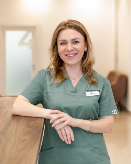 Як завідувачка жіночої консультації, Соломія Ярославівна супроводжує вагітність, проводить УЗД-підтвердження вагітності до 11 тижнів, КТГ, а також здійснює післяпологовий огляд і консультацію.