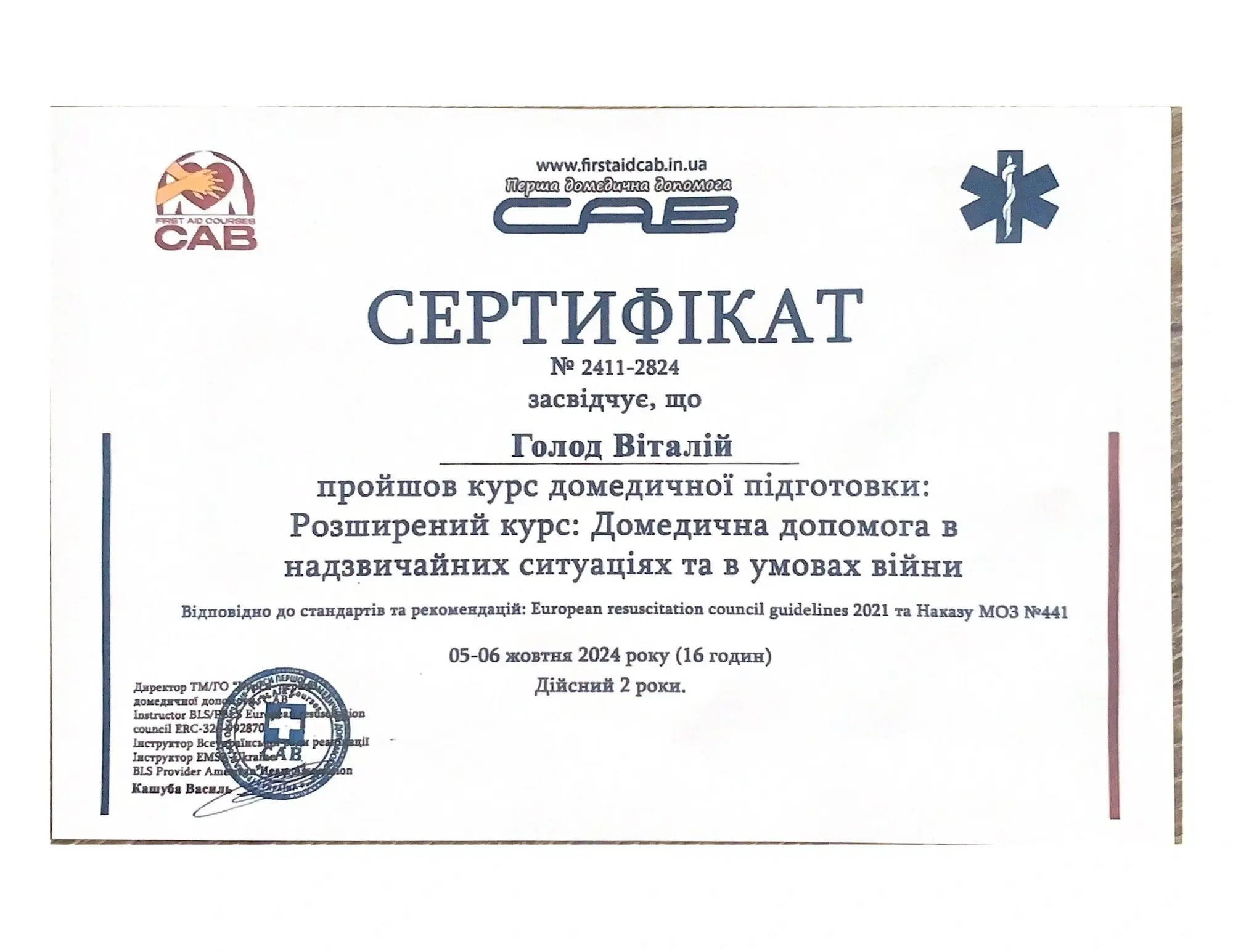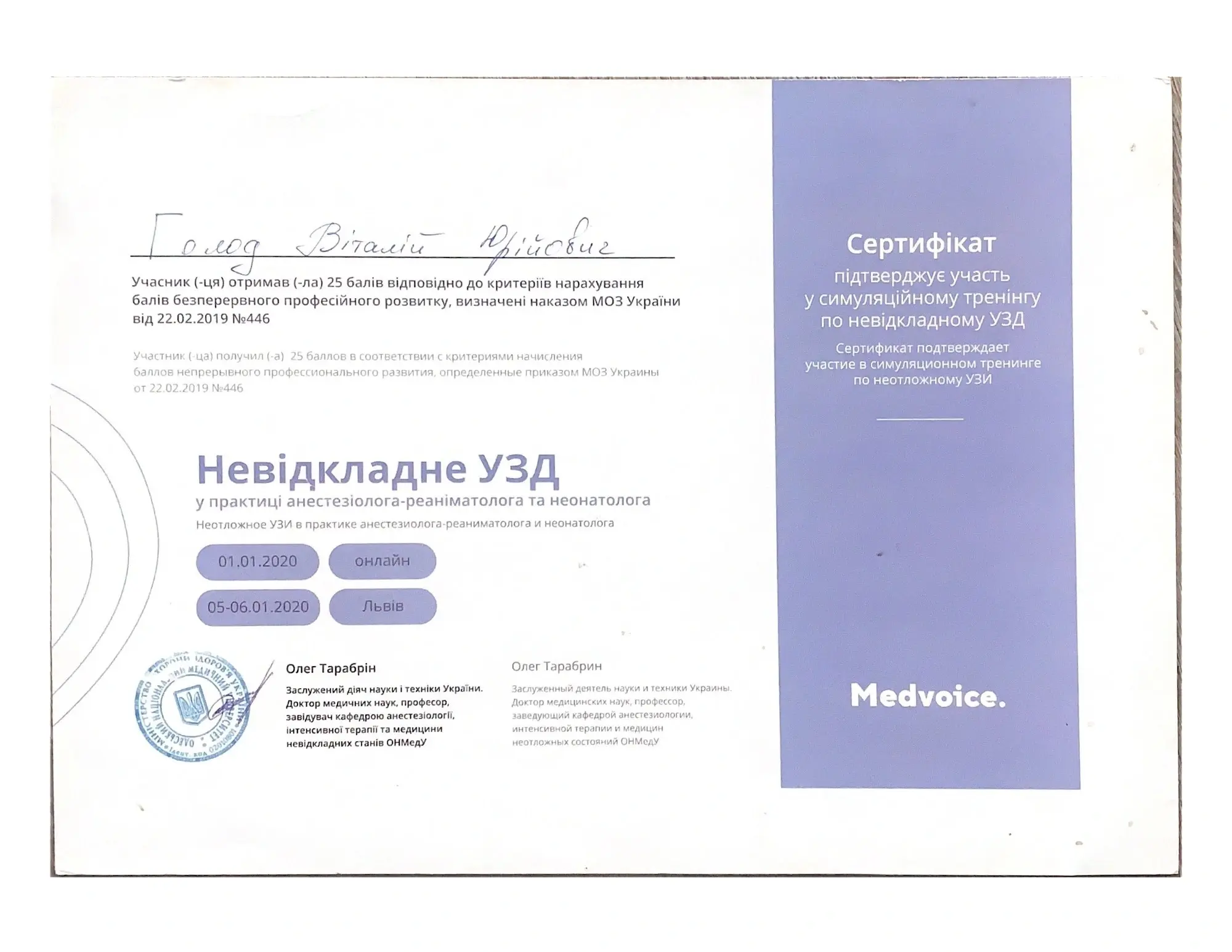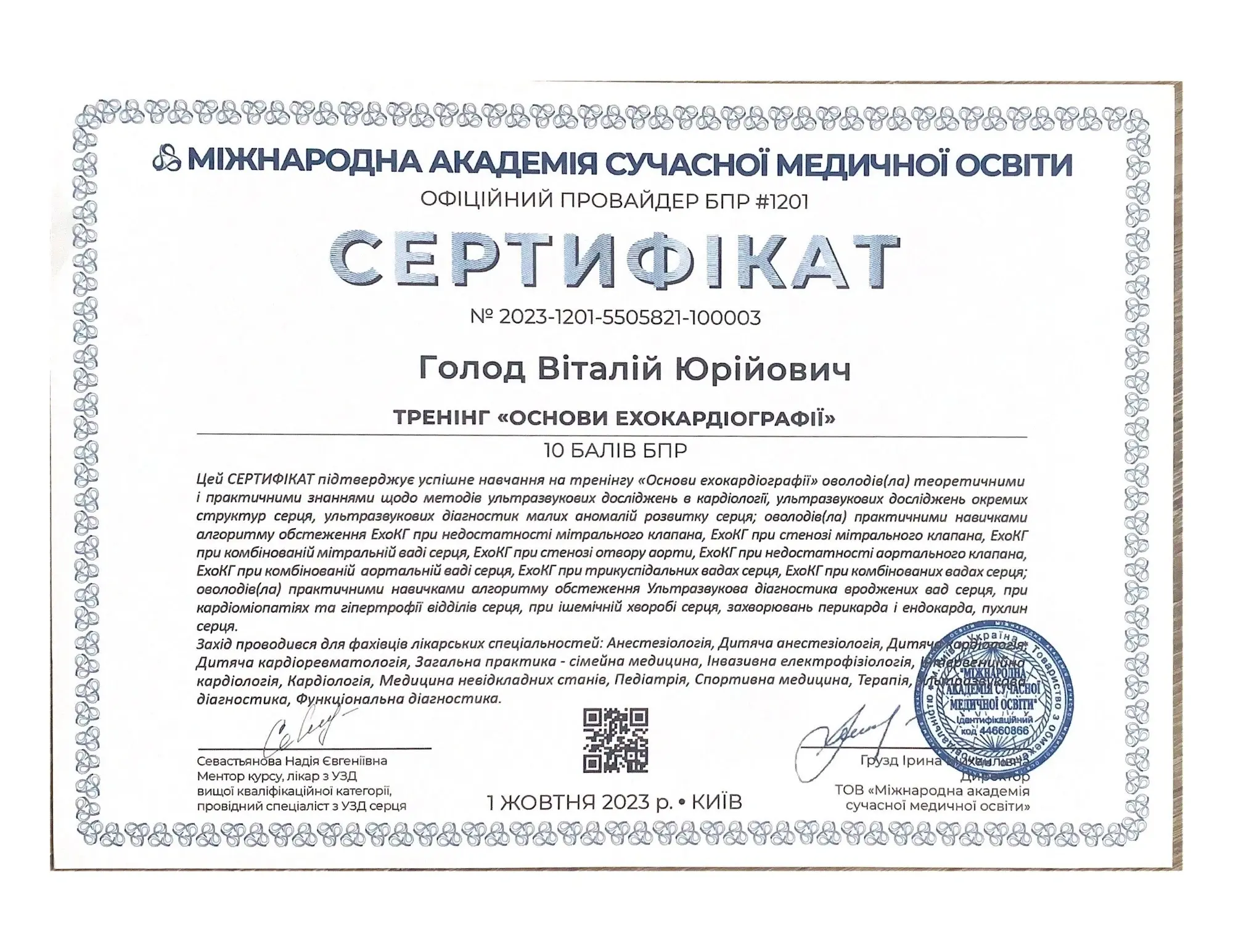 - 2025 р. - спеціалізація з функціональної діагностики.